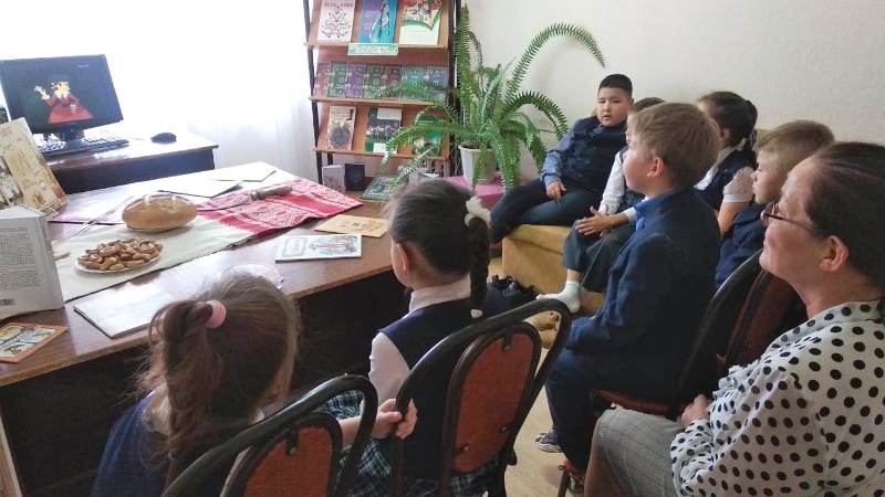 Татар китапханәсендә 7 нче мәктәпнең 1 сыйныф укучылары белән “Икмәк – иң зур байлык” дигән тематик сәгать уздырылды.