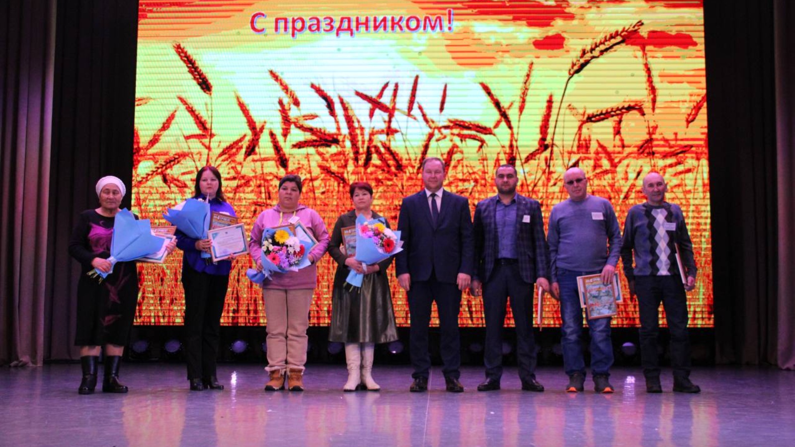 Бәйрәмгә хуҗалыклардан алдынгы комбайнчылар, механизаторлар, машина йөртүчеләр, машина белән сыер саву операторлары, бозаулар, терлек караучылар, КФХ, шәхси ярдәмче хуҗалыклар җитәкчеләре, башлыклары һәм ветераннар чакырылган иде. Иң яхшыларның берсенә Татарстан Республикасы Авыл хуҗалыгы һәм азык-төлек министрлыгының Рәхмәт хатлары, район башлыгының Мактау грамоталары һәм Рәхмәт хатлары, шулай ук бүләк сертификатлары тапшырылды.
