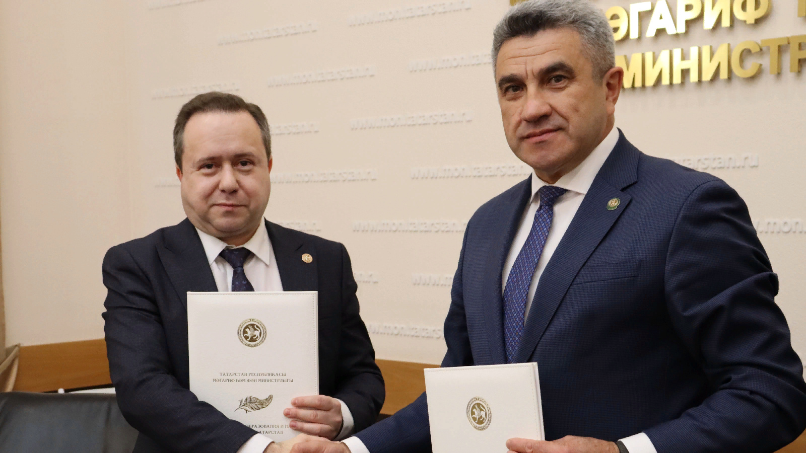 Россия Социаль фондының Татарстан буенча бүлекчәсе идарәчесе Эдуард Вафин һәм республиканың мәгариф һәм фән министры Илсур Һадиуллин мәгълүмати хезмәттәшлек турында килешүгә кул куйдылар.