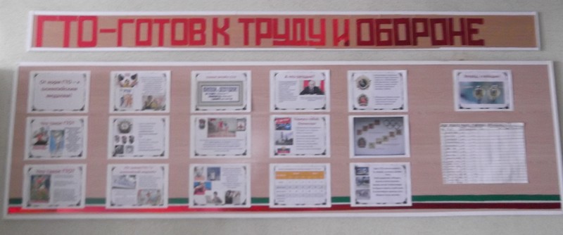 Мәктәптә “Хезмәткә һәм оборонага әзер” дигән стенд ясалды. Стенд сәламәт яшәү рәвешен пропагандалый, укучыларда массакүләм спортка кызыксыну арттырырга ярдәм итә.