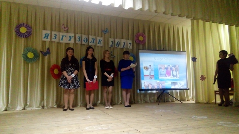 Жюри составында укучы малайлар утырды. Кызлар бөтен конкурста да узләренең осталыкларын күрсәттеләр. "Яз гүзәле" исеменә Ямалетдинова Алинә лаек булды. Андреева Альбина"Мисс очарование","Мисс Грация" - Афонина Арина, "Мисс Обаяние" - Никитина Камилла яулады. Мәдәният хезмәткәрләре - Япаева Лариса һәм Зиннурова Сәрия бәйгедә катнашучыларны,тамашачы хатын - кызларны 8 март бәйрәме белән котлап "Тәрәзәләр", "Балан" җырларын башкардылар. Нуриева А.М. бәйгедә катнашкан кызларга истәлекле бүләкләр тапшырды. Мәдәният хезмәткәрләре дә кызларга үз бүләкләрен тапшырдылар. Бу чара һәркемнен күңеленә хуш килде.